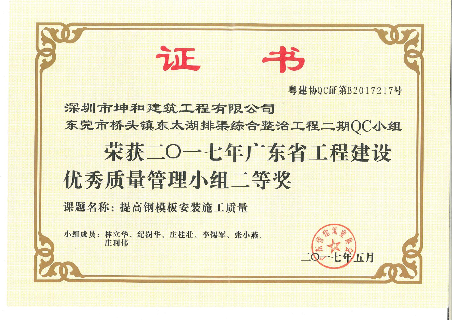 深圳市坤和建筑工程有限公司于二00五年十一月廿八日成立,經(jīng)過全體員工的共同努力,公司發(fā)展迅速,目前公司注冊資金為12010萬元,是一支具有房屋建筑工程施工總承包一級;市政公用工程施工總承包一級;水利水電工程施工總承包二級;地基基礎(chǔ)工程專業(yè)承包二級;建筑裝修裝飾工程專業(yè)承包二級;建筑機電安裝工程專業(yè)承包三級;鋼結(jié)構(gòu)工程專業(yè)承包三級資質(zhì)的專業(yè)施工隊伍,并于二00六年通過了ISO9001:2008標(biāo)準﹑ISO14001:2004標(biāo)準﹑GT/B2800-2001標(biāo)準三項管理體系認證。